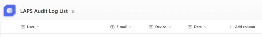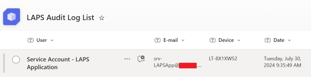Run the Power App again and request a LAPS password for a device you like. The SharePoint Online list contains now an item with the information who requested, for which device and at what date.