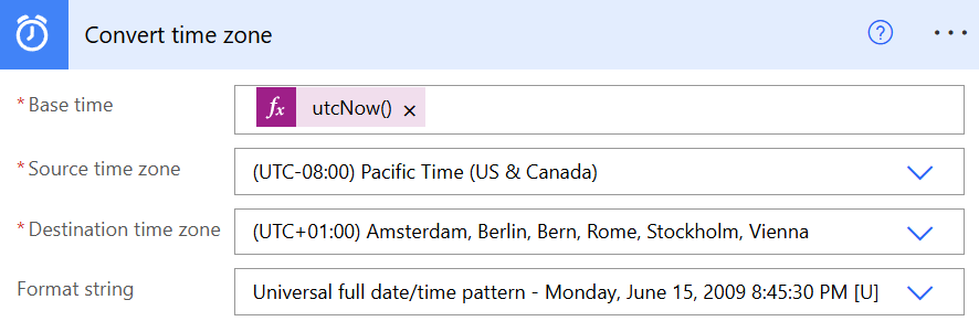 Add a new step “Convert time zone” and fill in the below details based on your region and time settings.