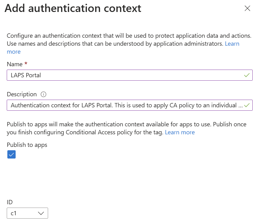 - Target Resources: Authentication Context – LAPS Portal