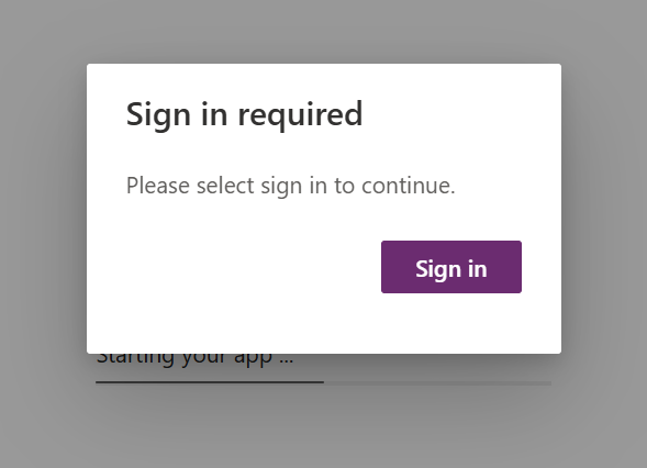 After entering the Power App, you get prompted for an additional sign in.