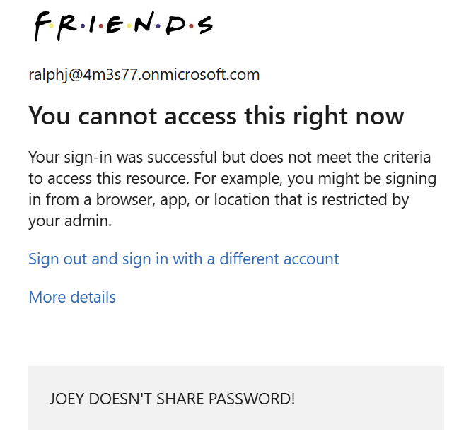 If you sign in you’re getting blocked by conditional access because you’re not coming from a compliant and Entra ID joined device.