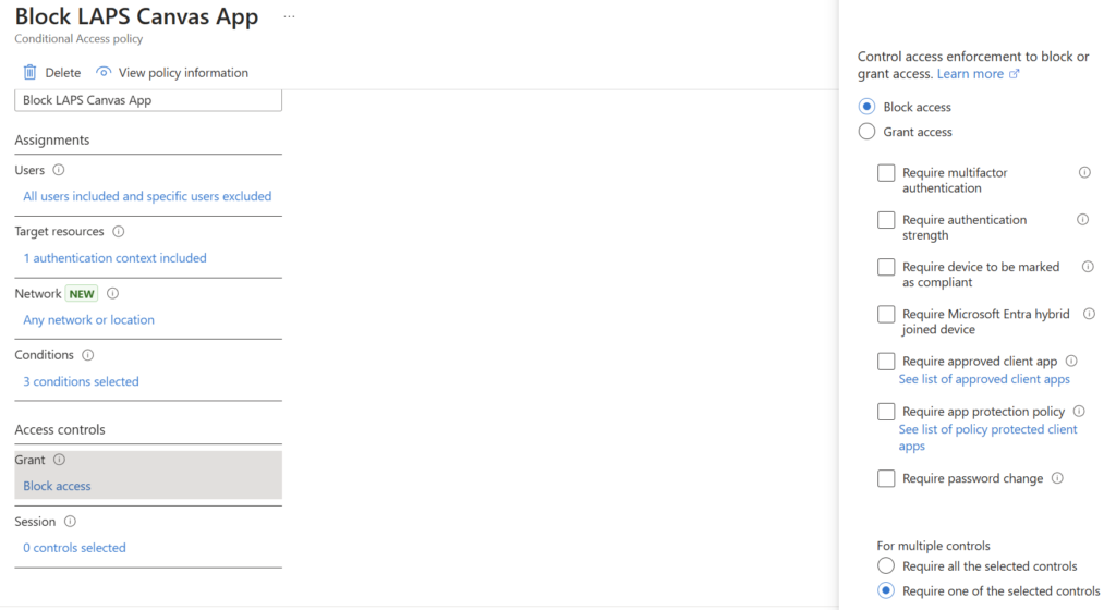 We’re going to create one conditional access policy that blocks access if you’re not coming from a compliant and Entra ID joined device.