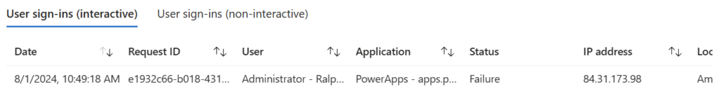 The sign-in logs in Entra ID show also a failure.