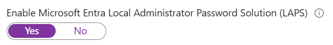 3. Scroll down to “Local Administrator Password Settings” and look for “Enable Microsoft Entra Local Administrator Password Solution (LAPS)”